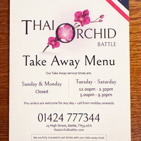 Thai Orchid has been established as the place to find authentic Thai flavours in East Sussex for over 10 years. All our chefs trained in Thailand and take great pride in bringing their regional speciality style and flavours to your plate. The warm and friendly Thai Orchid team invite you to enjoy a lunch or dinner at one of Battle’s best kept secrets.